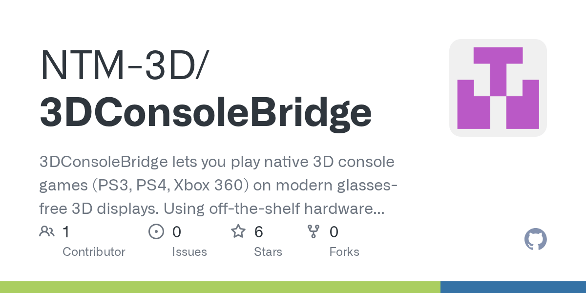 Step two: Play using a glasses free 3D display from for example Samsung, Acer or Lenovo: https://github.com/NTM-3D/3DConsoleBridge-SR or AR glasses like XREAL: https://github.com/NTM-3D/3DConsoleBridge-AR
