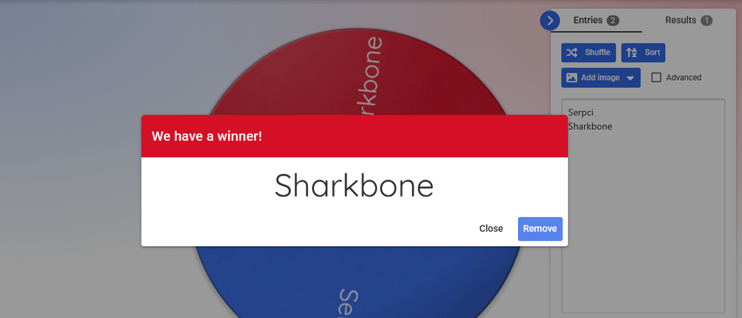 There was a tie last round, and the winner was chosen randomly