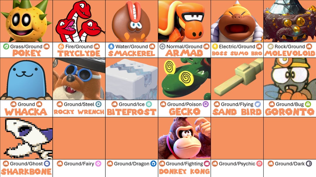 REMINDER: While I'm allowing multiple variants of the same species, I encourage everyone to try to be as unique with your choices as you can. Mario has a large character roaster, and I would love for this chart to represent that in some capacity.