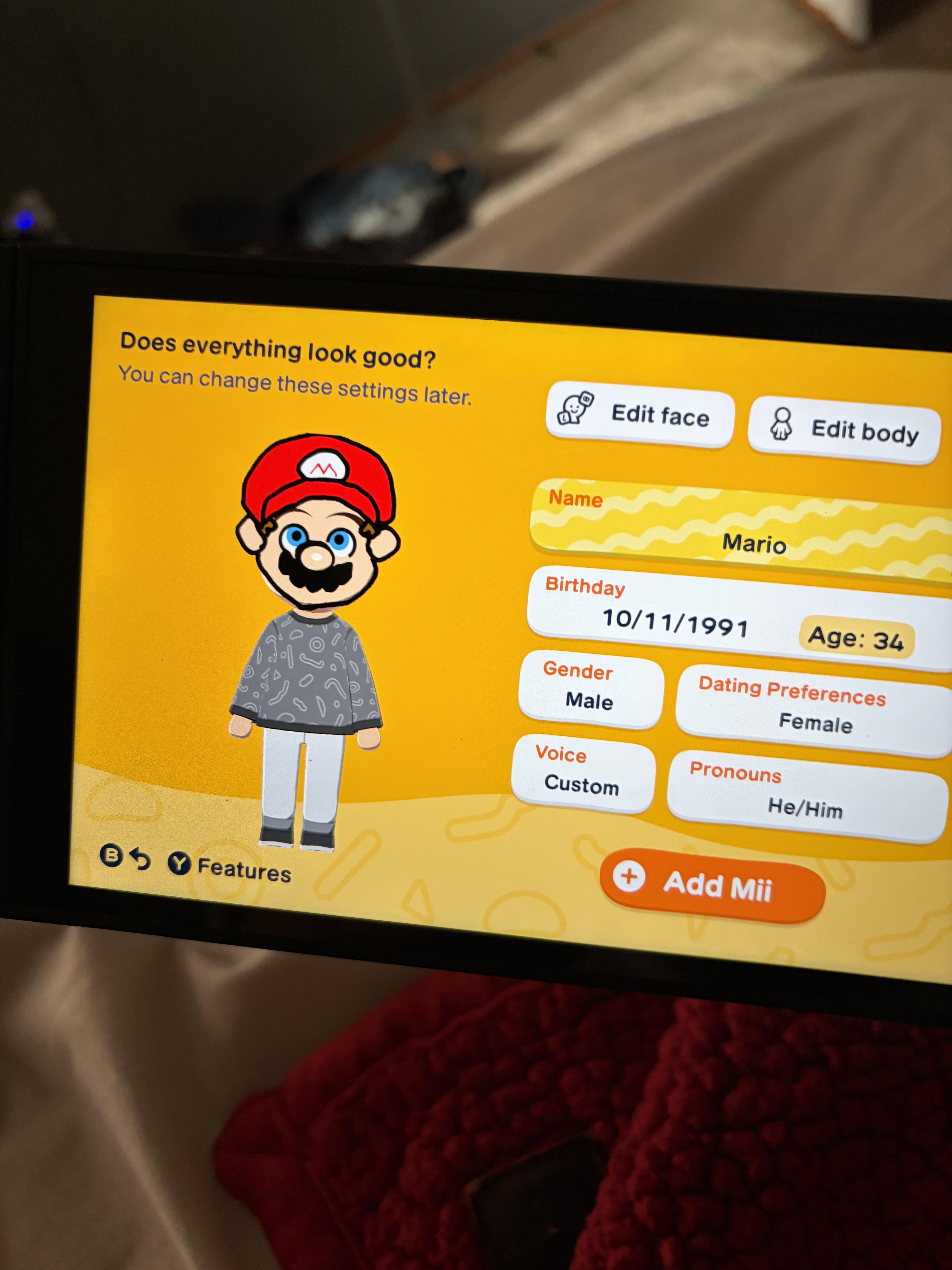 My first attempt at trying to amor Mario in TL:LtD. Any advice for my future miis? Posted by Otherwise-Ad980