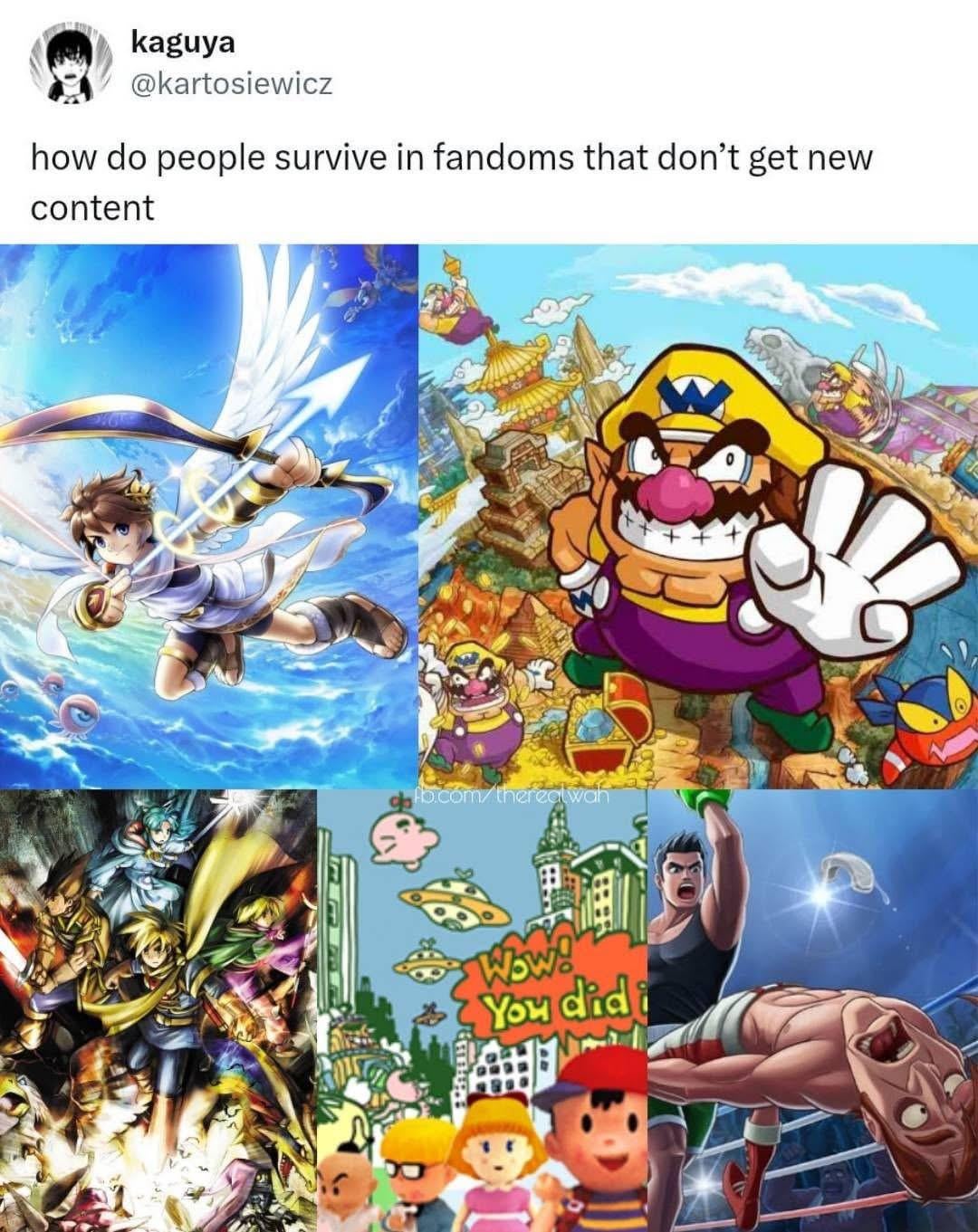 EdgarSinTitulo on April 20, 2026 12:37 am Either through fanmade content (Like the Mother fandom), or by going insane (Like the Pïkmin fandom)