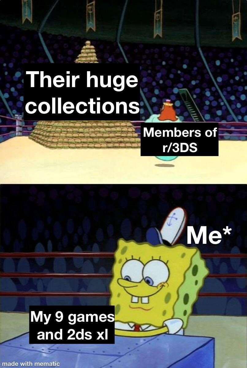 That’s all that matters. Yeah, the peeps here have some wicked cool collections. But I’m in the same boat as you. I have my console, also a N2DS XL, and about seven physical 3DS games (I got a few more DS games plus the digital titles I have on the console).
