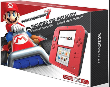 the console is mint with 5 minutes of playtime on Mario Kart 7 bundled in, comes with the manual and the AR cards, the stylus, the box in semi rough condition, and the original charger. It is a stock console.