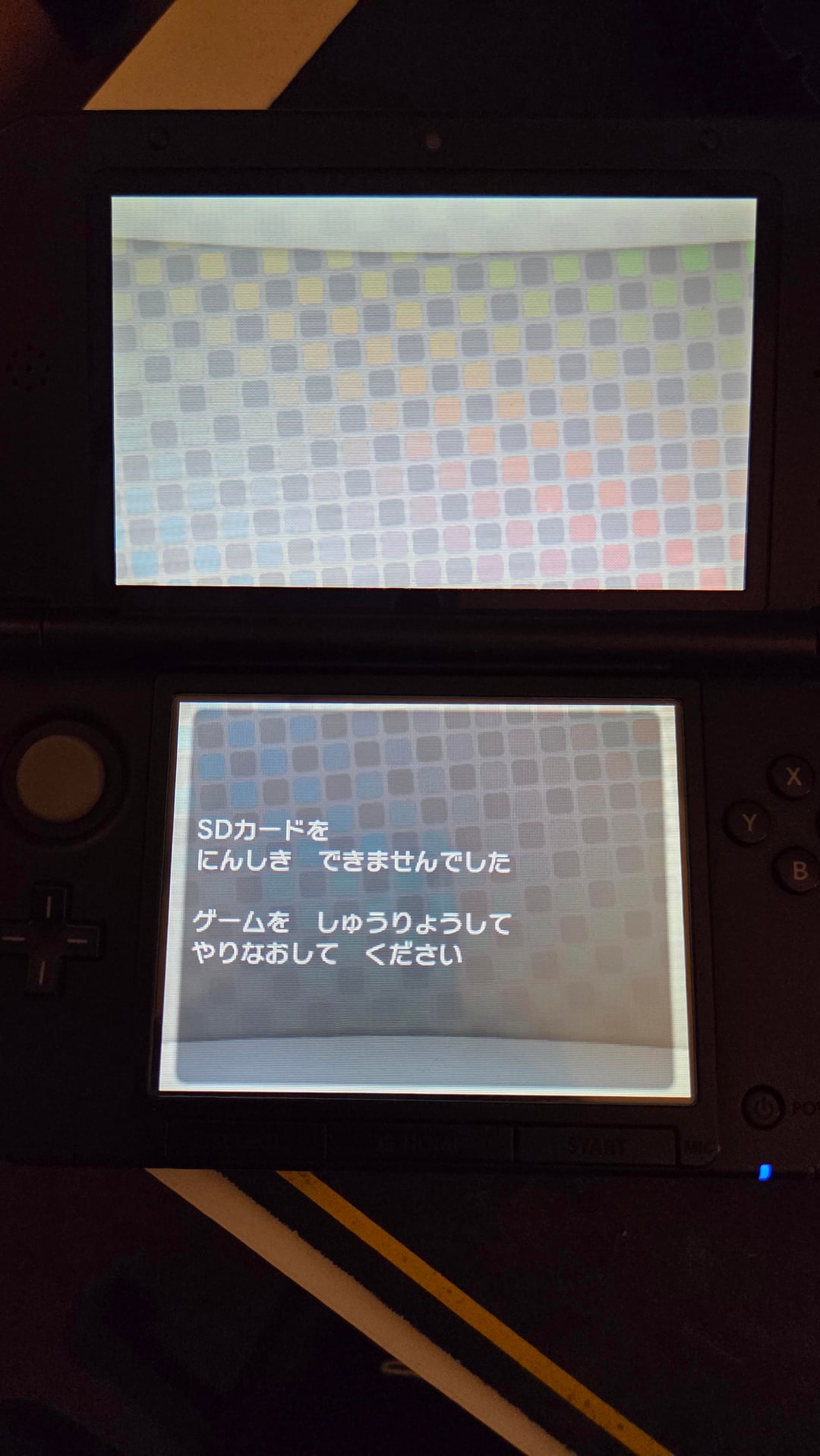 I have recently purchased 3DS and game cards from Japan. After I insert the game card (Pokemon Y in this case), an error comes up translated to "SD card recognition could not be performed. Please end the game and start over."