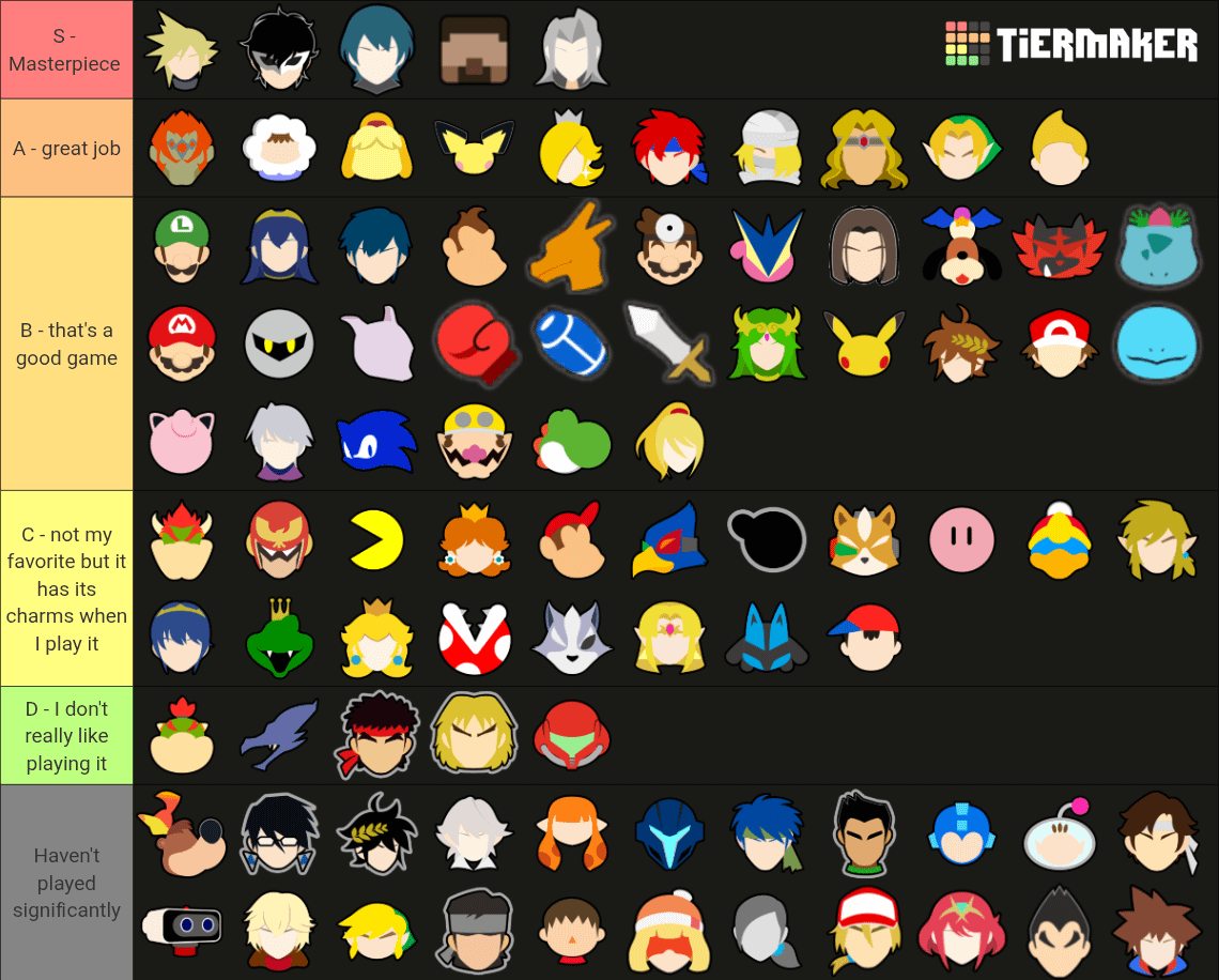 I know dark samus got a cameo in Metroid prime's 100% ending but I counted her as Metroid prime 2 which I never played. If I counted Metroid prime 1, which I did play, I'd put her bottom tier because I was not having fun playing Metroid prime. Sorry.