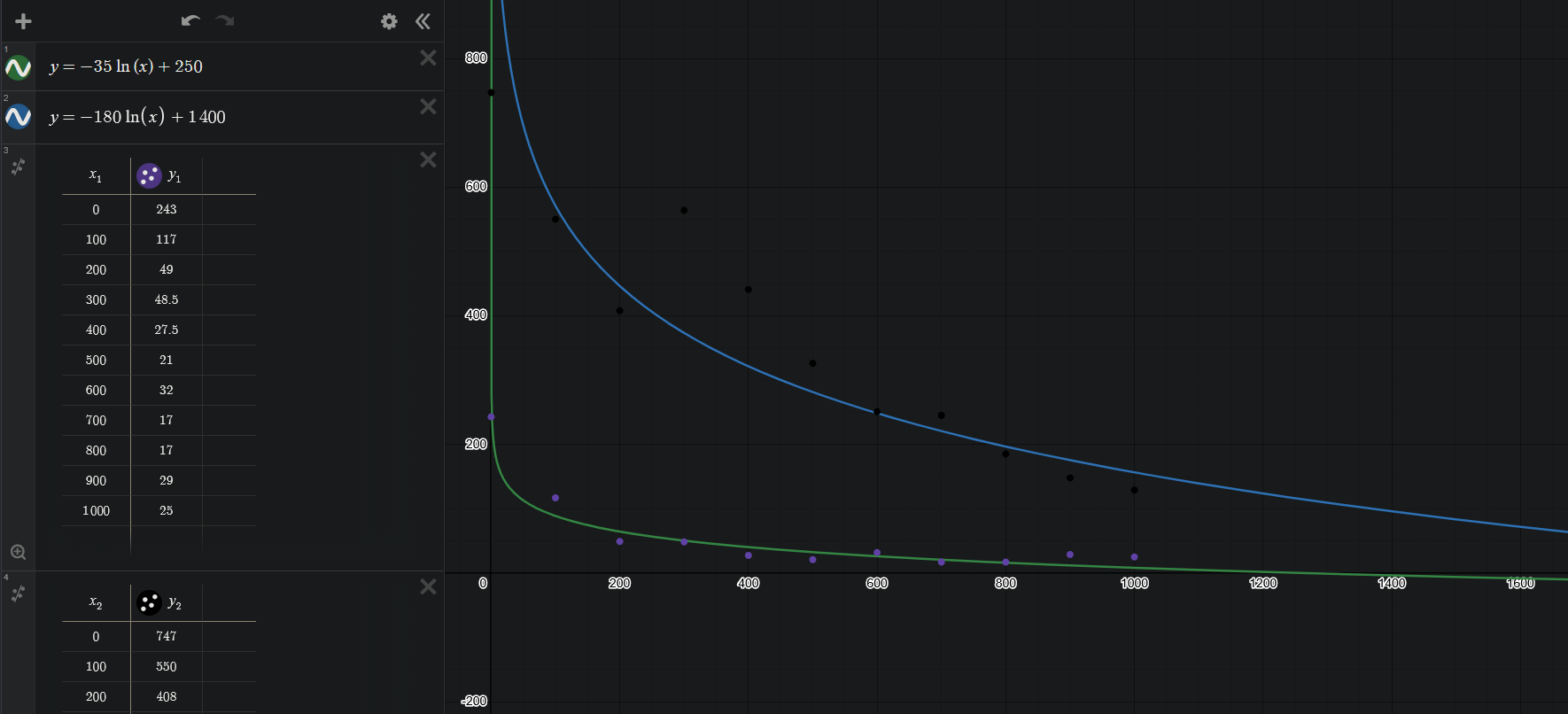 I've been playing The Finals a lot recently and was looking at the player count, and thinking, "hmm, that looks a lot like a natural log graph" (like anyone does) So I took the SteamDB player data over the past 2 years and put it into Desmos, and tried to fit a ln function to it. I cut down the player counts to their thousands, i.e. 650,000 = 650, just so that it scaled better.
