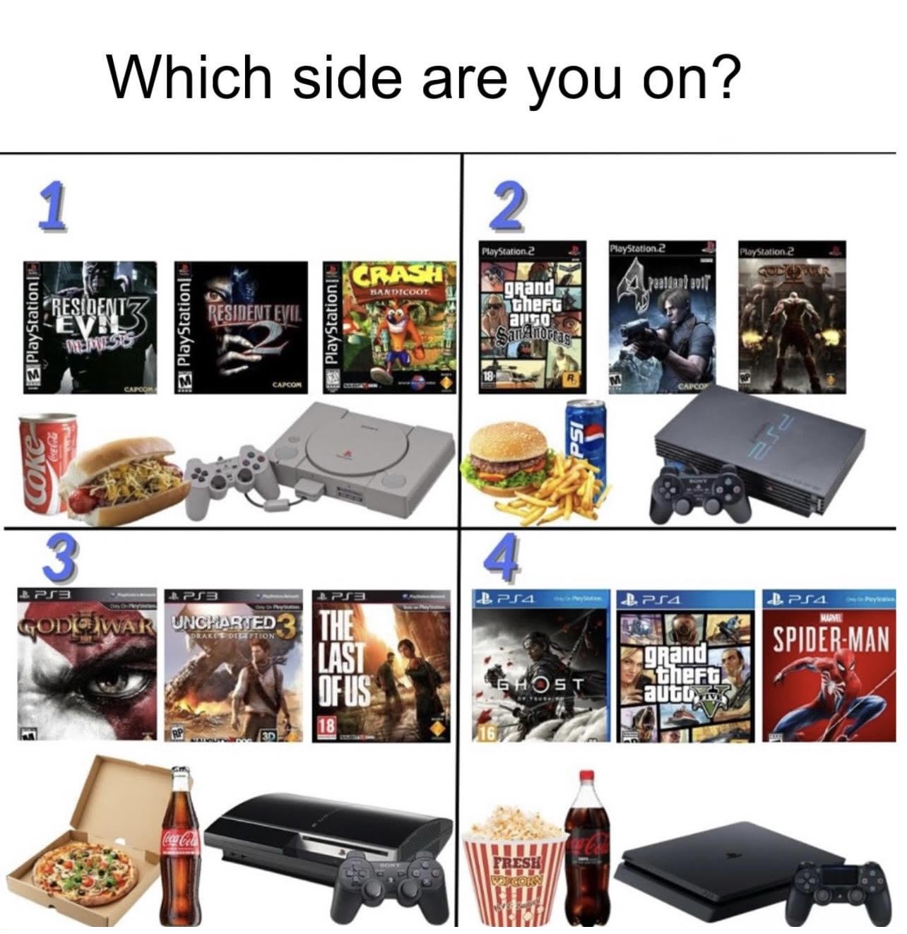 side 2 easy. ps2 library was insane and that taco actually looks decent unlike whatever that sad popcorn situation is in 4